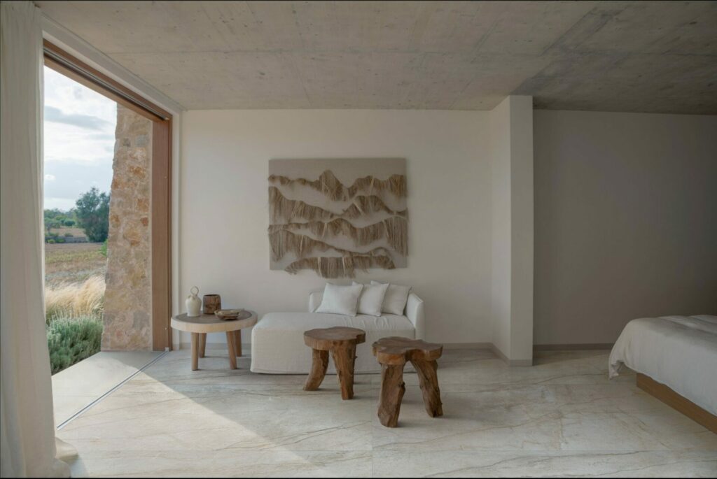 Para crear un dormitorio con aire bohemio es esencial partir de una base que evoque lo natural y lo artesanal. Los revestimientos de pared en cal, yeso o arcilla texturizada aportan profundidad visual y un acabado suave, perfecto para este estilo. En el suelo, los porcelánicos efecto madera o los suelos de madera natural sin brillos refuerzan la sensación de calidez.