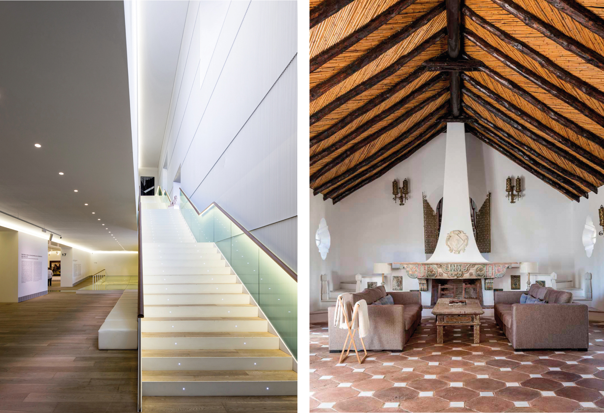 Dos de los edificios que más han marcado al fotógrafo vasco a lo largo de su trayectoria. Proyecto de la izquierda: Museo de Bellas Artes de Asturias, Francisco Mangado, Oviedo 2016. A la derecha: Cortijo de San Francisco, iKasa, Estepona 2018.