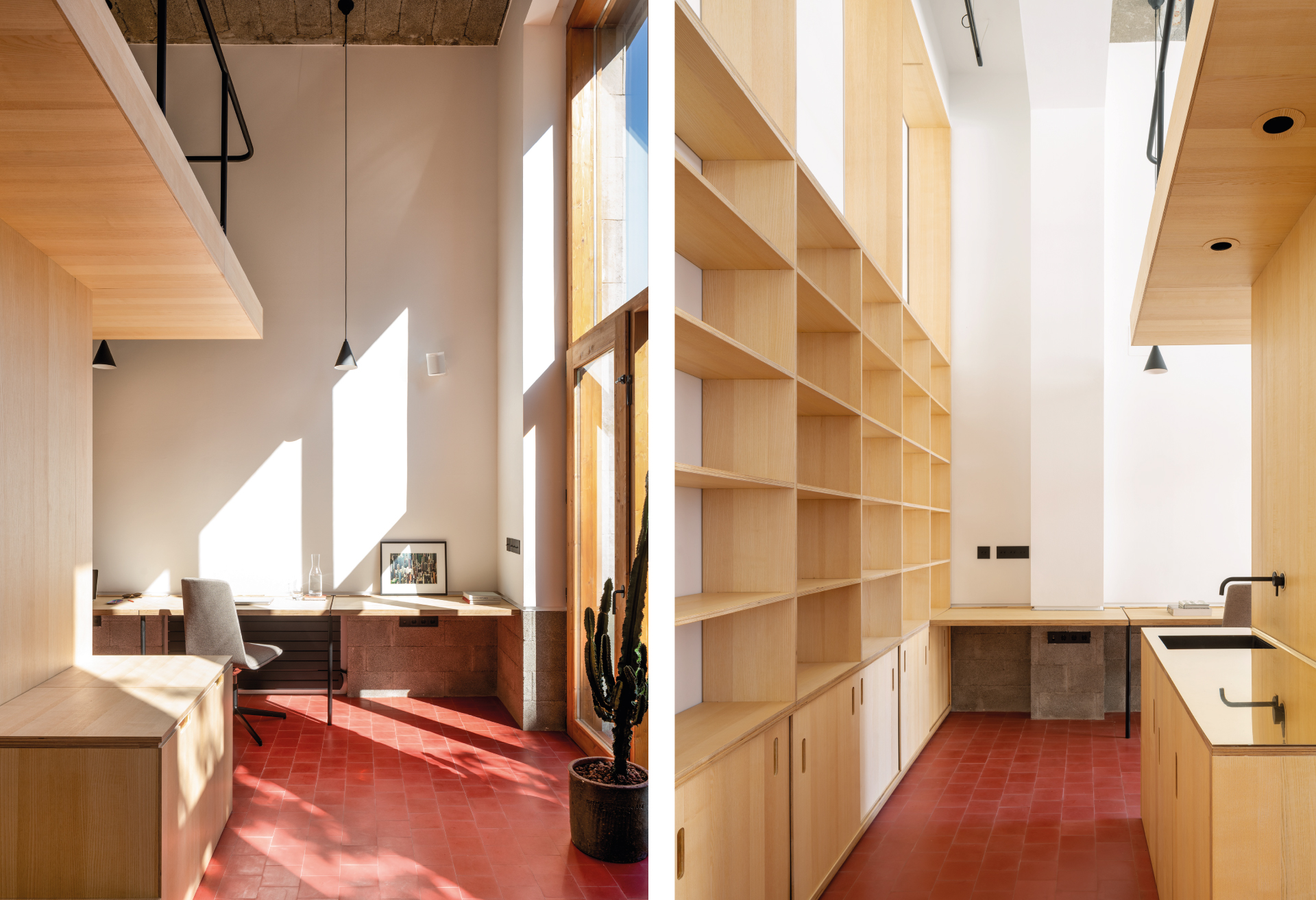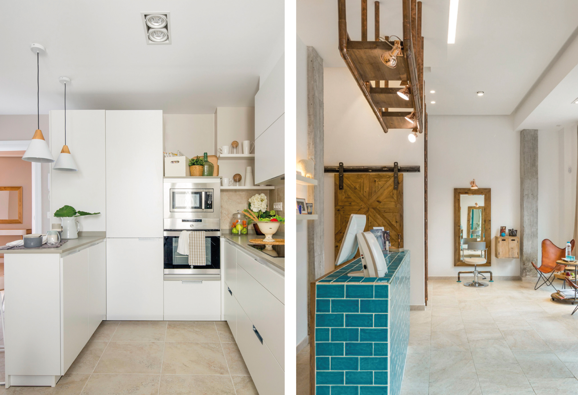 Dos de los espacios de Natalia Zubizarreta retratados por Biderbost. Proyecto de la izquierda: Vivienda, Gernika 2015. A la derecha: Peluquería Parole Parole, Bilbao 2015.