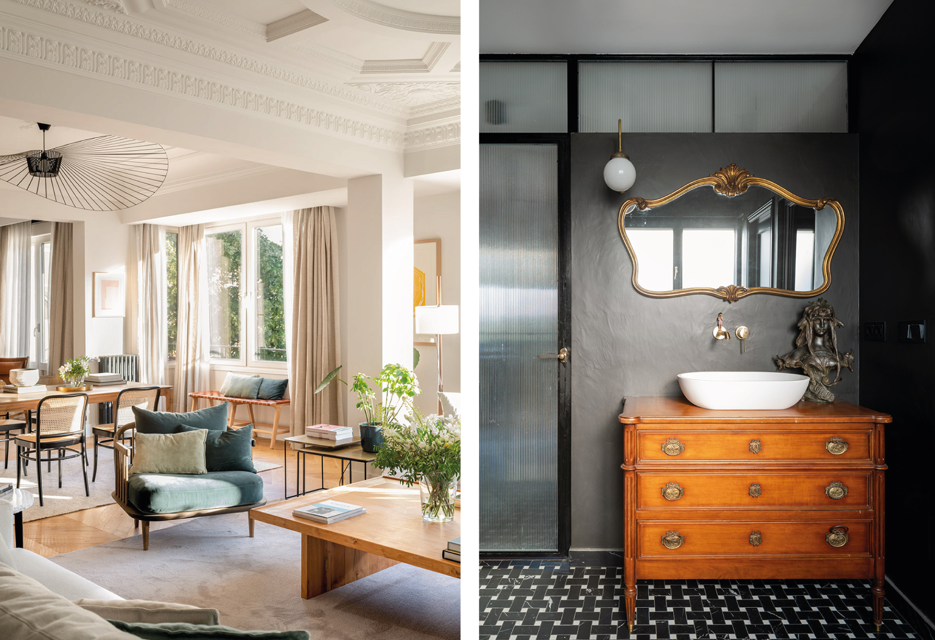 Así son algunas de las casas que Biderbost ha fotografiado recientemente. Proyecto de la izquierda: Vivienda Gran Vía, Sandra Vergara, Bilbao 2020. A la derecha: Vivienda Bilbaina, Lázaro Estudio, Bilbao 2020.