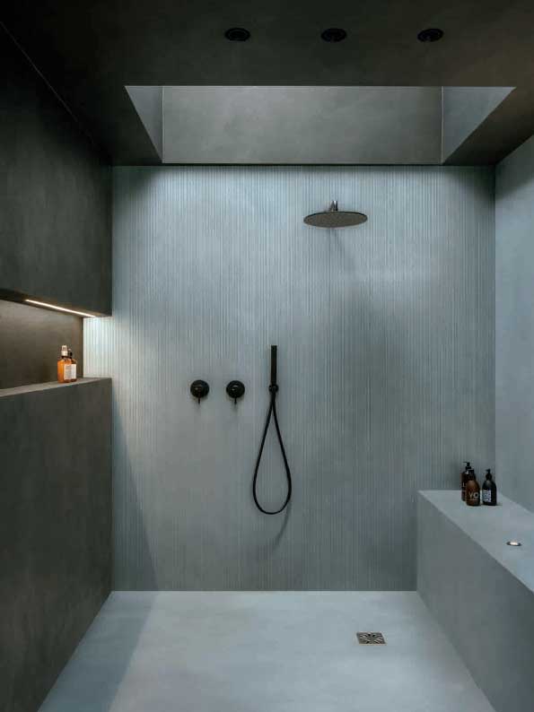 Por otra parte, la inclusión de texturas como los que vemos en la segunda imagen, pertenecen a la colección ISLAND de Equipe Ceramicas son los elementos que aportan el equilibrio, la naturalidad y el bienestar que buscamos. El uso de este formato rectangular en el revestimiento de la columna proporciona múltiples posibilidades de colocación.