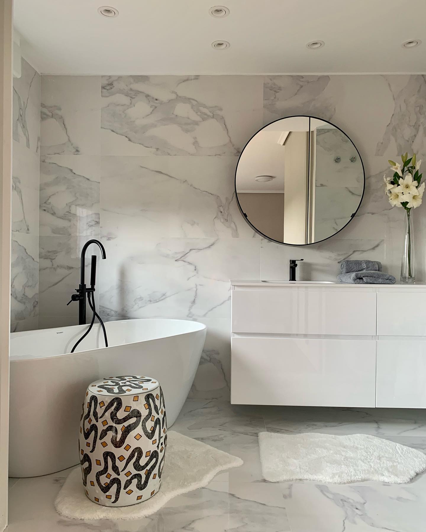 Además, la suma de detalles en color negro, como la grifería es tendencia, ya que su sola presencia hace que la estancia se vea mucho más moderna. En este baño, proyecto de Aitor Villamandos, se incorporó también de manera discreta con el marco del espejo. Se consigue un espacio amplio y elegante.
