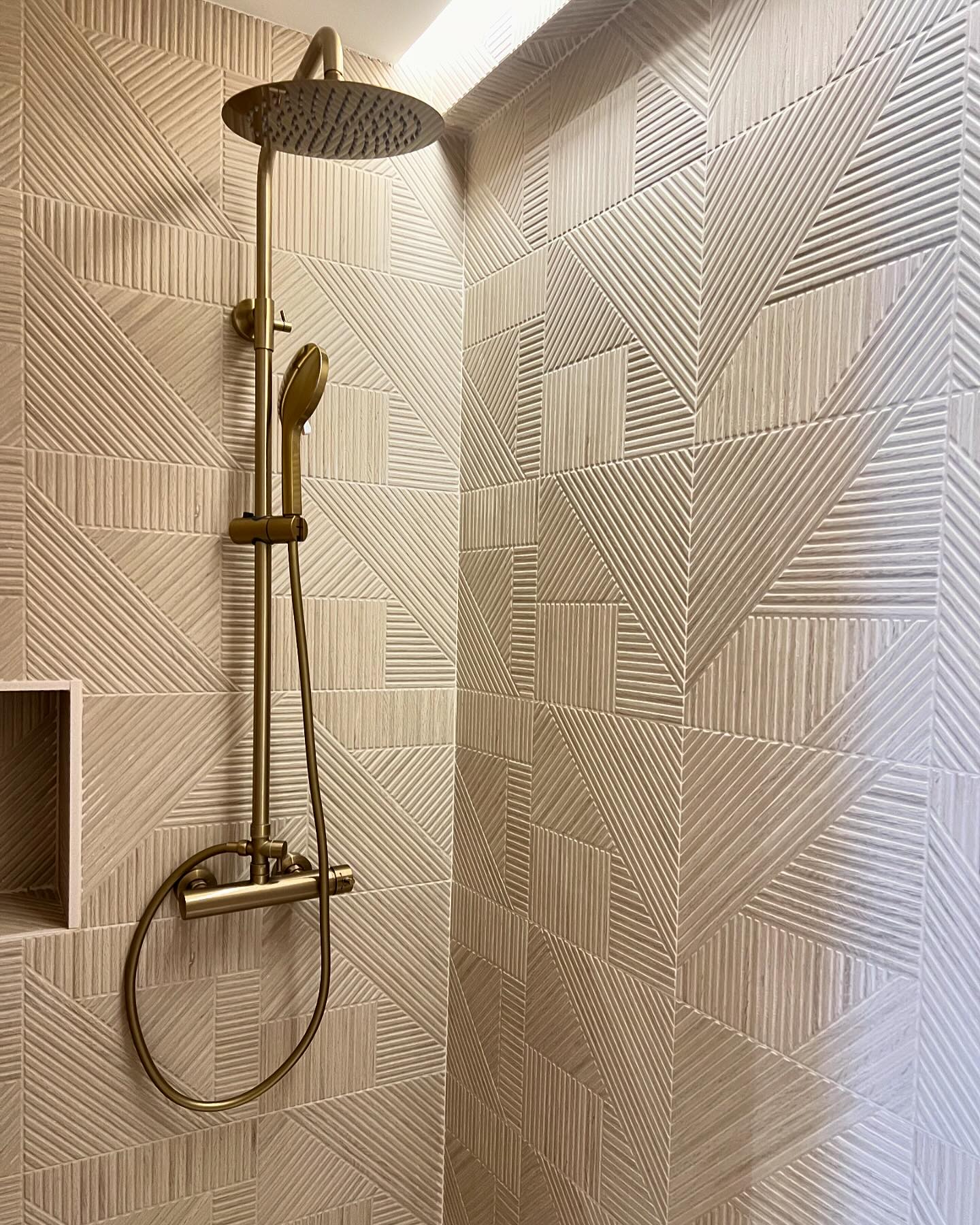 En ambas imágenes, podemos apreciar los revestimientos utilizados en la zona de la ducha, y cómo incide la luz en cada uno de ellos, ofreciendo diferentes efectos y ampliando el espacio. Por último, la incorporación de hornacina nos permitirá un extra de almacenamiento, integrado con el espacio y que permitirá mantener la ducha despejada, así como añadir un toque elegante y contemporáneo a la estancia.