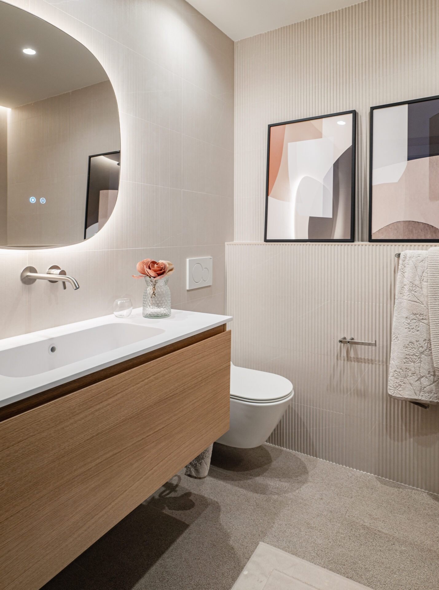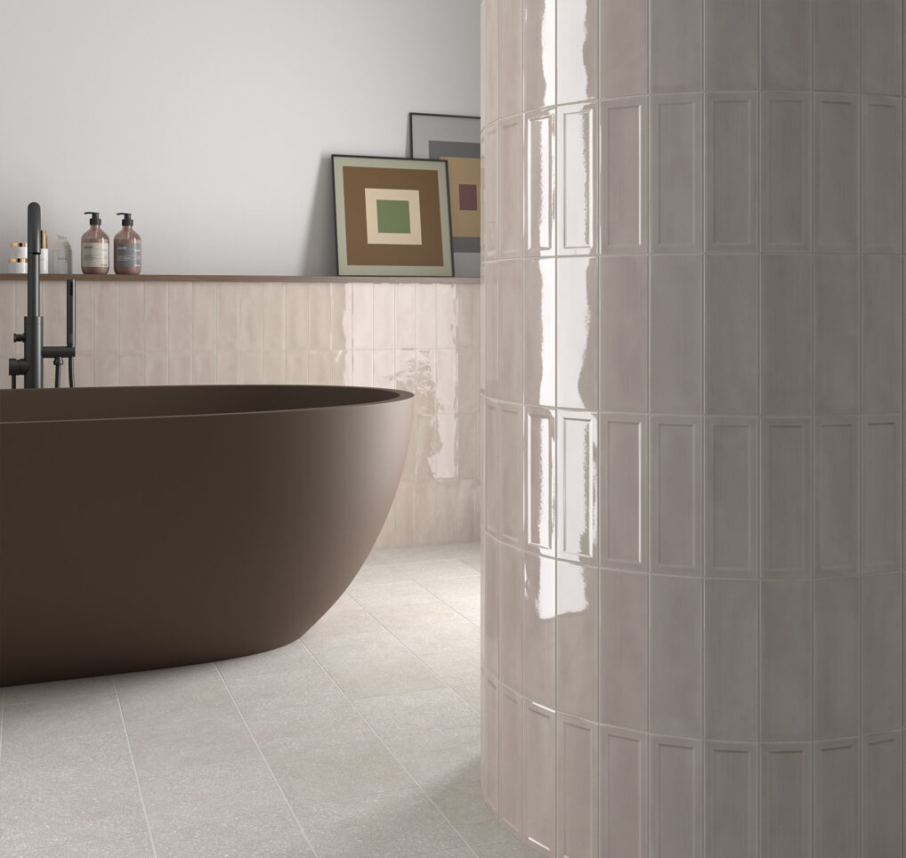 Otra de las tendencias para cubrir las paredes del baño son los revestimientos con relieve, aportando un look actual y muy natural.