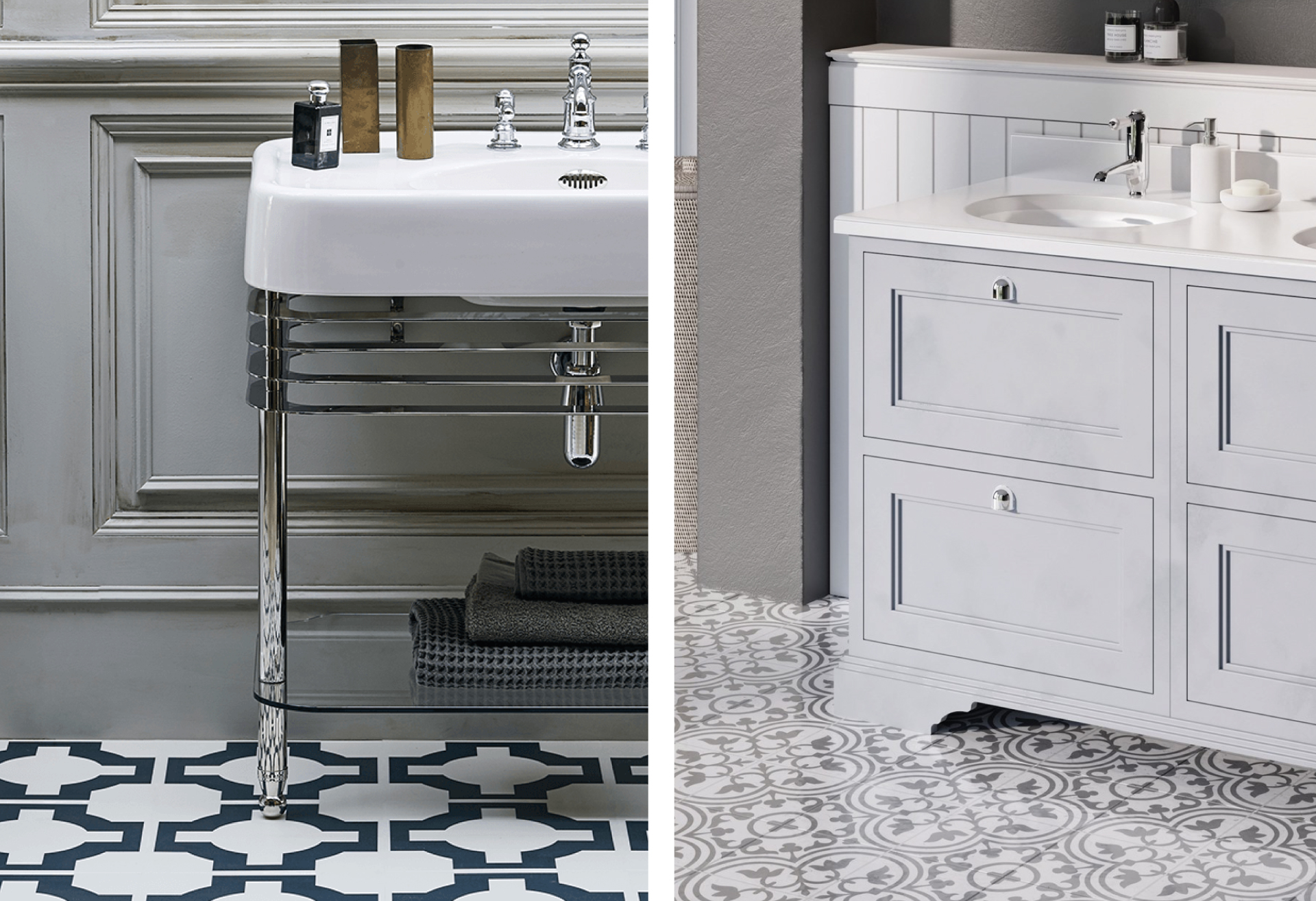 ¿Por qué no combinar los sanitarios de Burlington Bathrooms con azulejos y baldosas modernas? ¡Así se obtendrá un baño con un poco de nostalgia, contraste y mucho ritmo visual!