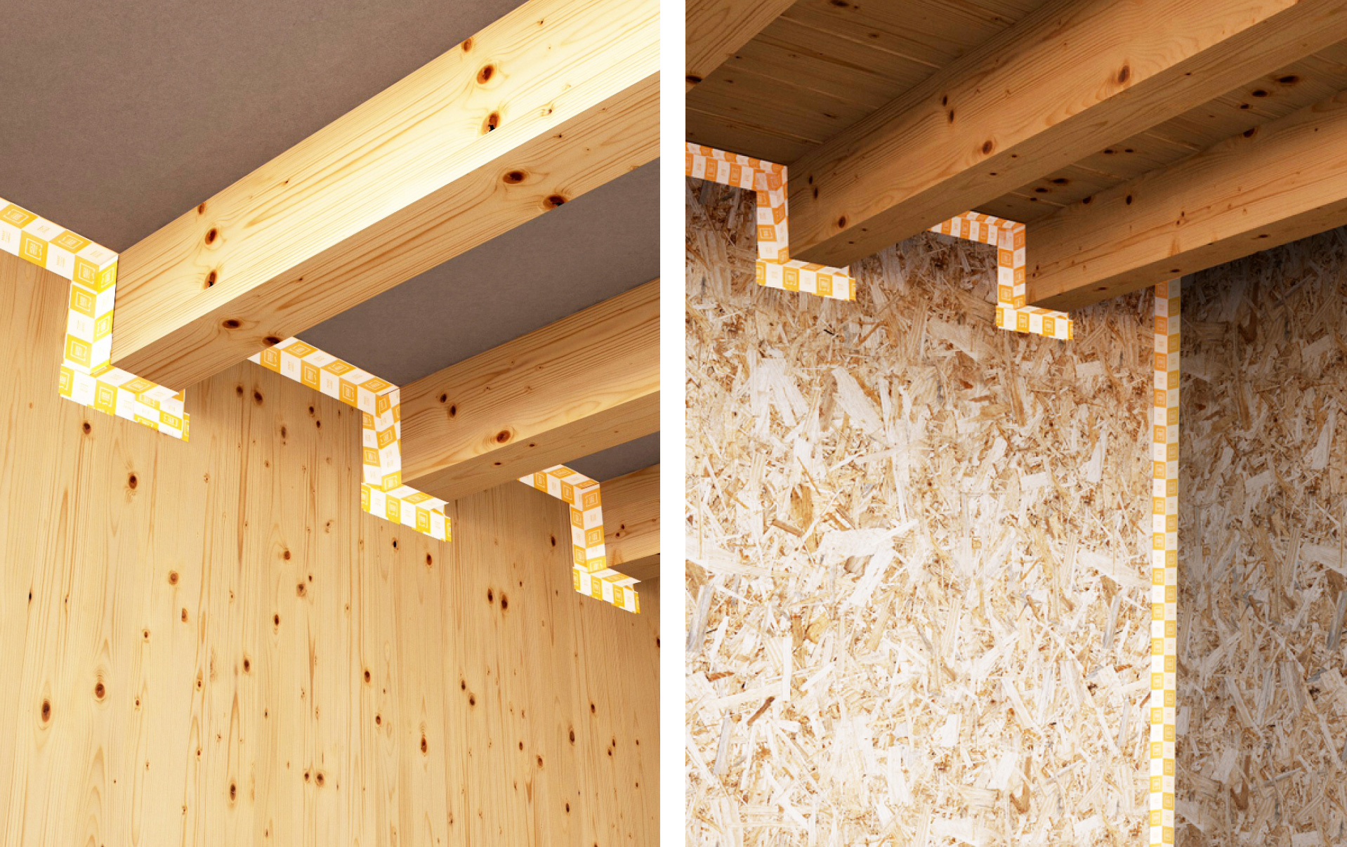 A la izquierda y derecha, varias de las aplicaciones de la cinta monoadhesiva Interna, de Holz Technic.