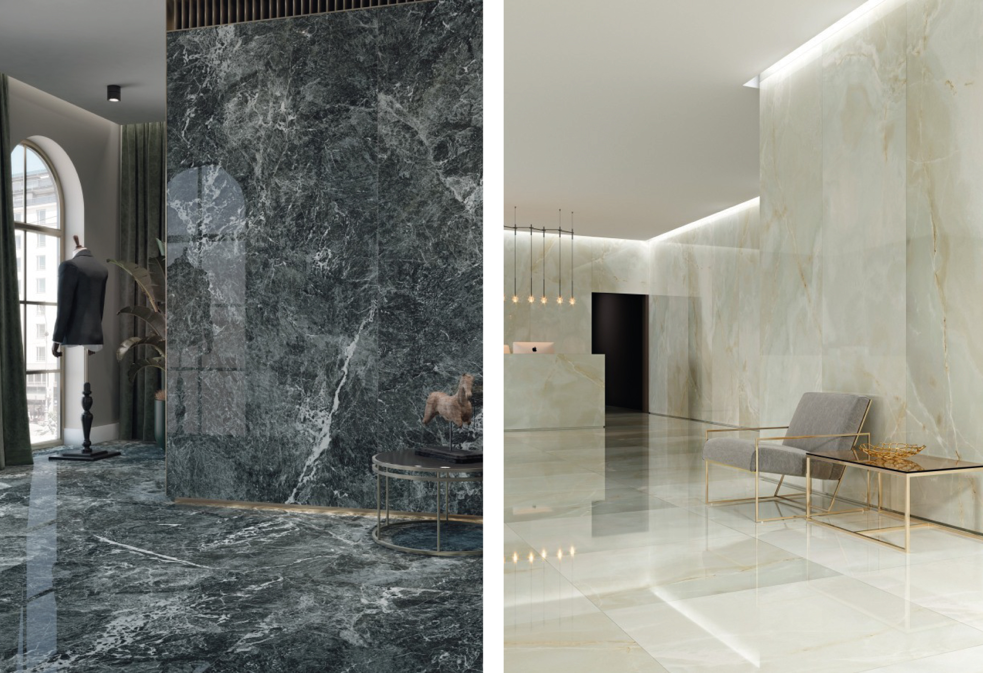 En estas dos imágenes, los modelos Tivoli y Nero Ardi (a la izquierda y derecha, respectivamente) destacan por hacer de sus vetas un signo único de distinción.