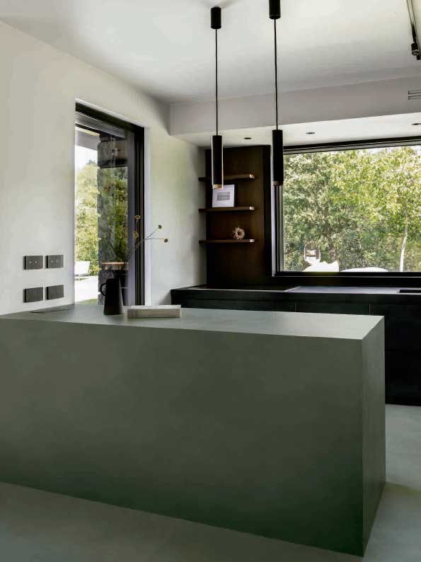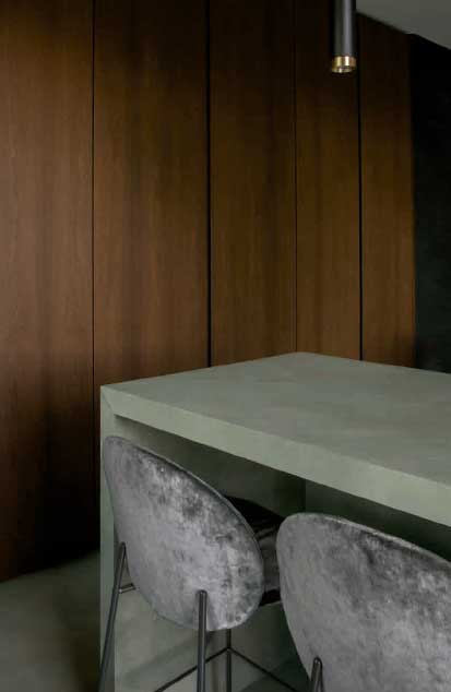 El diseño de Essential Mood se caracteriza por superficies fluidas, matéricas y a toda masa que se extienden sin límites, para favorecer el tránsito armonioso entre los espacios y el diálogo constante entre el espacio y las personas que lo habitan. El espacio se convierte en un refugio reconfortante, como escenario acogedor donde ser los protagonistas.