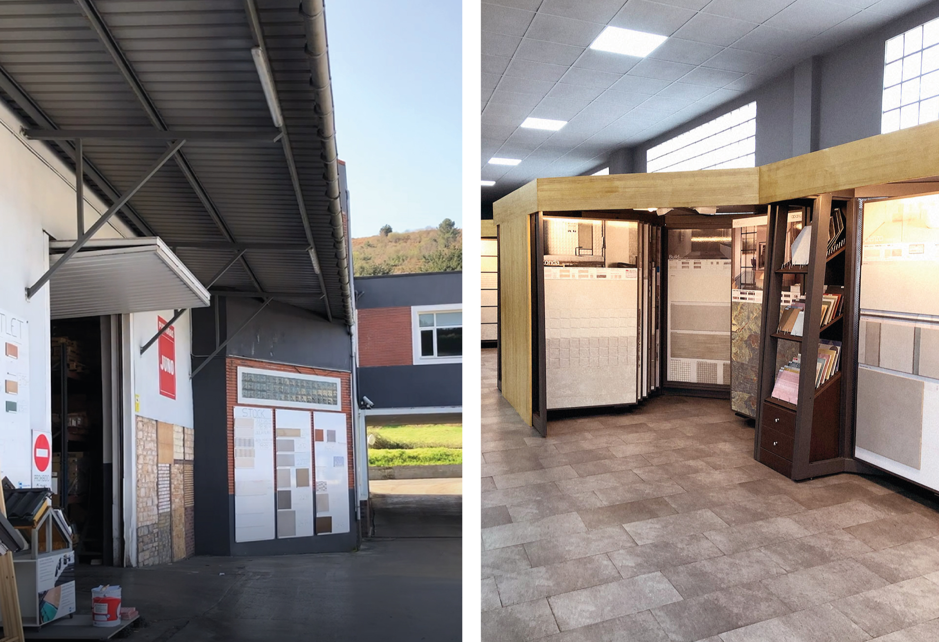 A la izquierda, una imagen de nuestra sede-almacén de Barakaldo, cuya tienda cuenta con un nuevo interiorismo (a la derecha) desde finales de febrero.