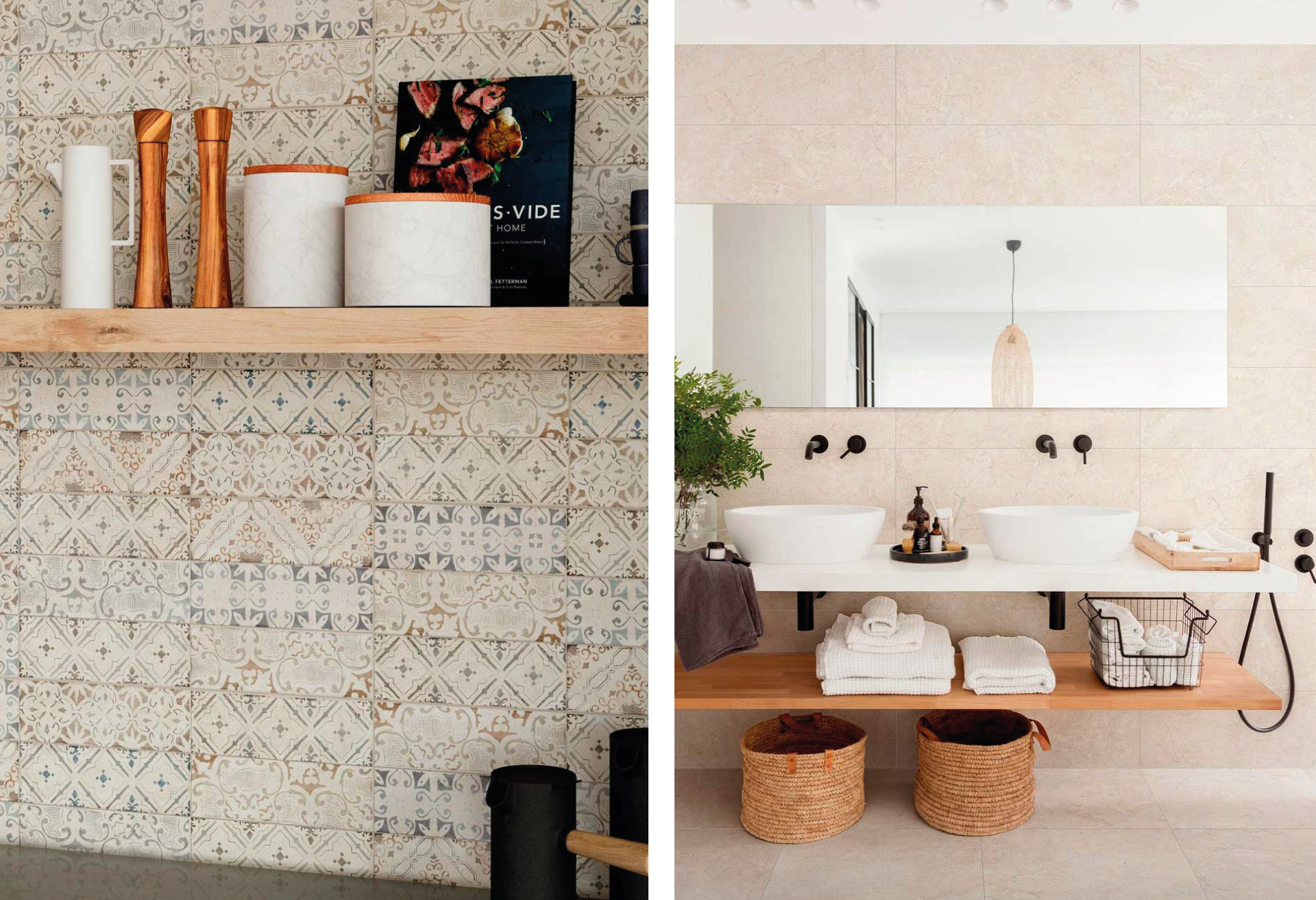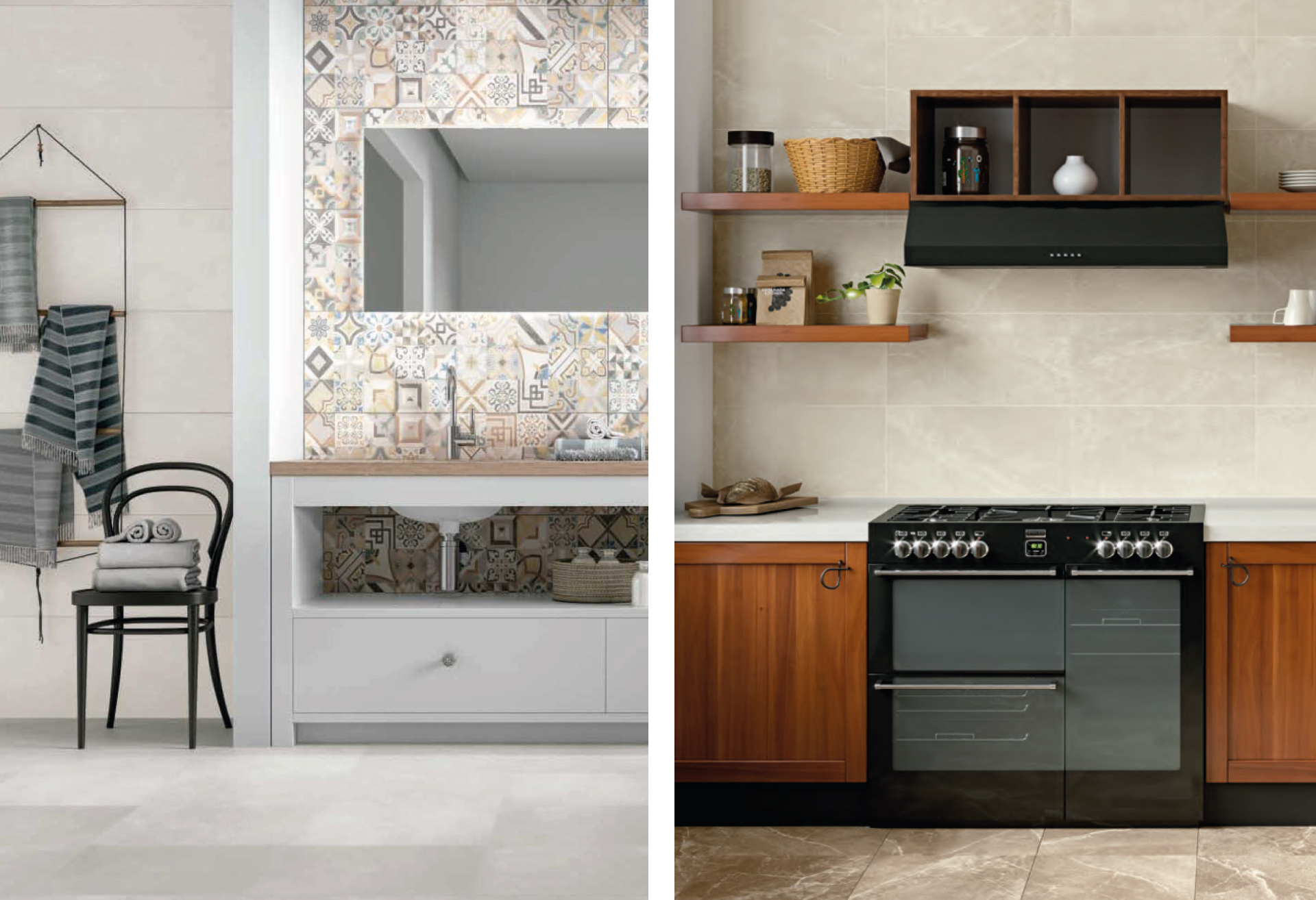 A la izquierda y derecha, respectivamente, las líneas Bodo y Devan de la marca castellonense Alaplana.