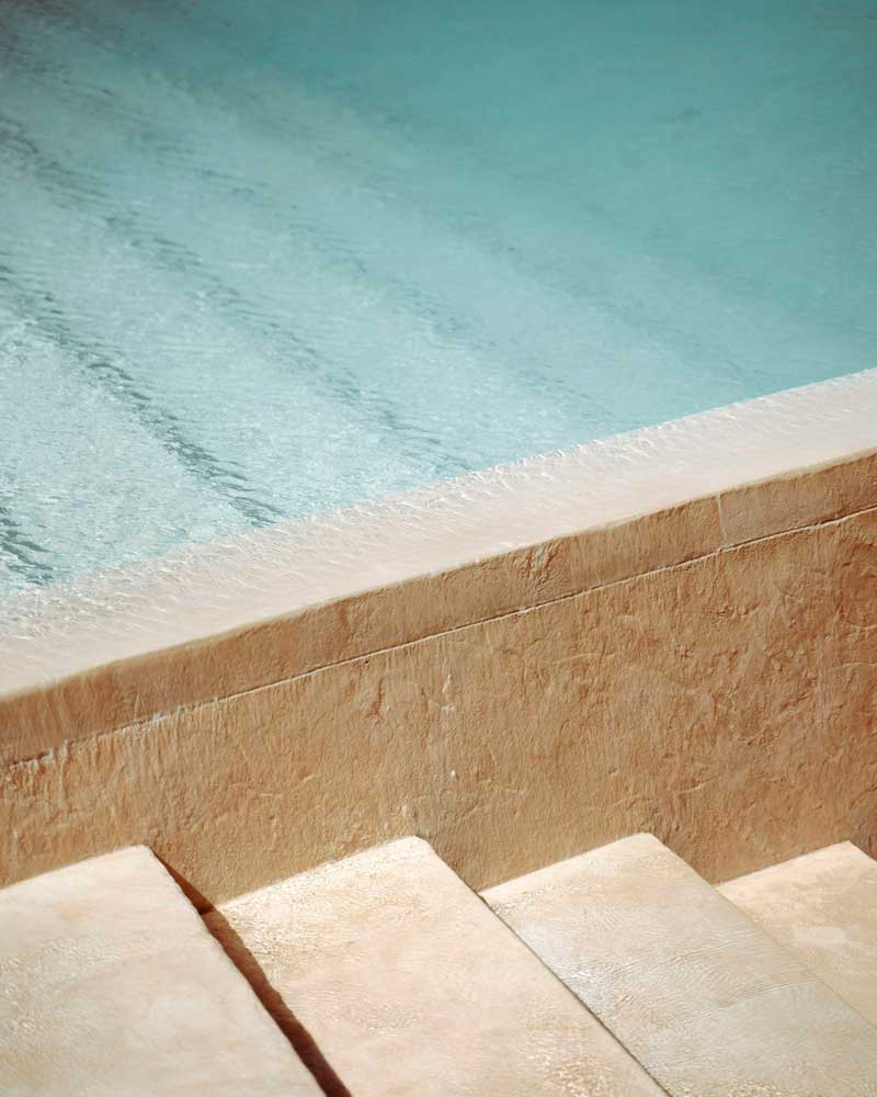 Otra particularidad del uso de pavimento con piedra natural es lo bonita que luce la piscina con esa tonalidad suave, cálida y antideslizante, proporcionando funcionalidad y diseño a partes iguales.